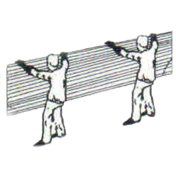 No içamento das telhas Tebraz não deve haver esforços de compressão no sentido lateral, podendo içar uma quantidade variável de acordo com suas dimensões, devido à sua leveza. Se possível içá-las tipo canudo, enrolando no sentido da largura.