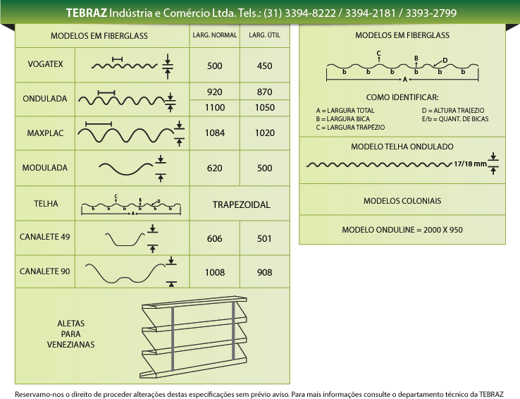 Conheça as especificações tecnicas em tabelas de nossas telhas e compare